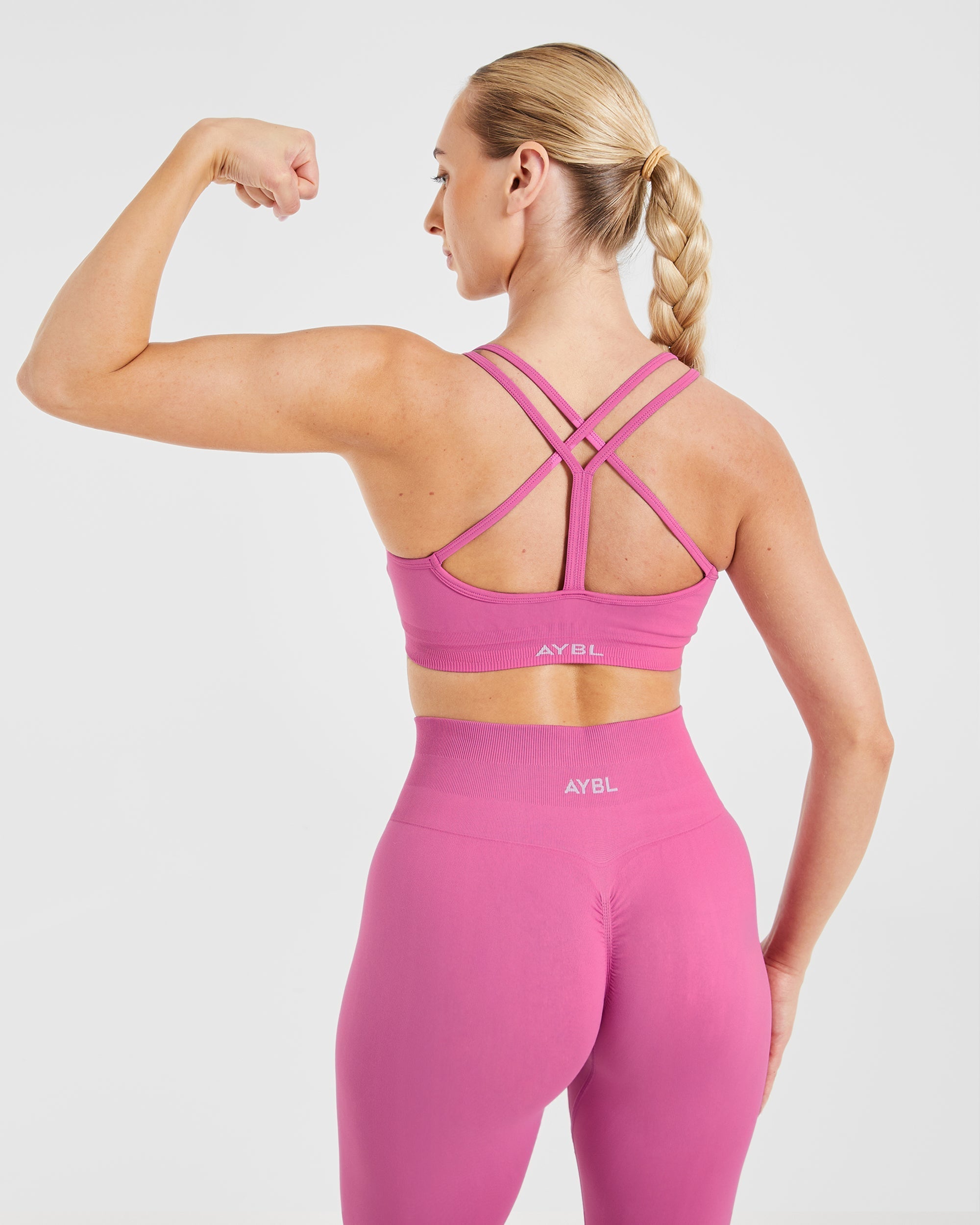 Expertly designed for comfort and support, the Power Seamless Sports Bra is a new must-have for any active wardrobe. The super soft, buttery fabric provides a comfortable fit, while the 3 tier rib knit waistband and the true sports bra length ensure you feel supported in all the right places. Gain a sleek, minimalistic look with the refined knitted-in logo and simplistic design. With flattering V-neck detailing, pretty cross-over back straps and subtle rib contouring, this sports bra will make you feel unstoppable.